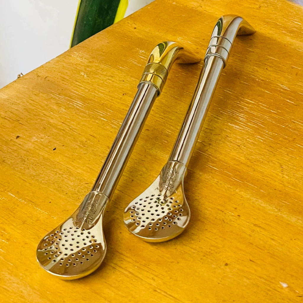 ➡️ Bombillon pico de loro de caño de 10" pulgadas, integramente de aplaca maciza, con filtro tipo pala/cuchara. Opcional con Pico de Bronce o Pico de Alpaca.